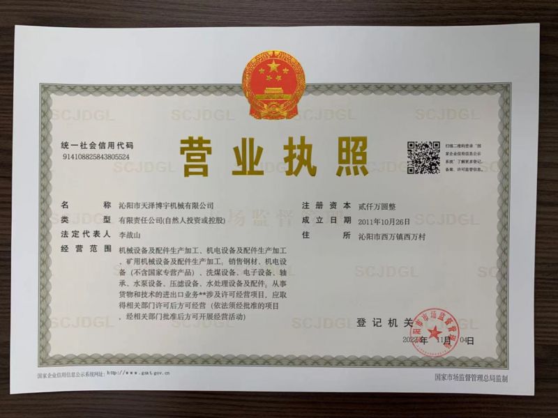 沁陽市天澤博宇機械有限公司,是一家集生產(chǎn)、銷售于一體的礦山設備制造企業(yè)。